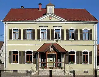 Das Schulhaus (Mairie-école) war 1876 bezugsfertig. Die Fassadenmitte mit den beiden Eingängen durch einen kleinen Dreiecksgiebel und ein Türmchen betont. Alle Fenster mit einem Scheitelstein im Stichbogen verziert.