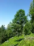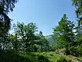 Der Wald ist einer der am höchsten gelegenen Mischwälder aus Traubeneichen und Lärchen in Europa. Die vor langer Zeit von Menschen angepflanzten Lärchen lassen mit ihren feinen Nadeln genügend Sonnenlicht passieren und wirken trotzdem bei grosser Hitze wie ein Sonnenschirm, der Pflanzen und Tiere schützt.