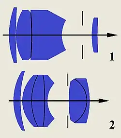- Tessar, Weiterentwicklung des Protar- bzw. Unar-Anastigmaten mit 4 Linsen in 2 Gruppen (2 Einzelglieder, ein verkittetes Doppelglied)