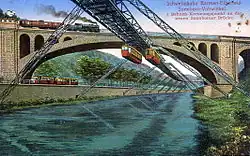 Das Tragkonstruktion der Wuppertaler Schwebebahn führte ab 1899 eng zwischen zwei mittleren Pfeilern hindurch.