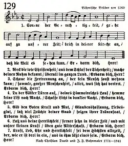 Im Reformierten Gesangbuch der deutschsprachigen Schweiz RG wird der Text auf eine vor 1467 in Böhmen bekannte Melodie gesungen, die 1531 bei Michael Weisse vorkommt.