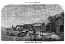 Knapp zwei Kilometer südwestlich hatte auch eine Gruppe französischer Wissenschaftler eine Beobachtungsstation errichten lassen. Es war nicht leicht gewesen, dafür bei den Behörden in Bangkok eine Genehmigung zu bekommen. Die zuständigen Beamten konnten kaum glauben, dass solche Mühen und Kosten aufgewendet würden, um ein Ereignis zu beobachten, das nur wenige Minuten dauern sollte. Am 25. Juli trafen die Wissenschaftler Édouard Jean-Marie Stephan, Georges Rayet und Félix Tisserand bei ihrem Beobachtungsstand ein. Sie stellten Fundamente für eine Vielzahl von Instrumenten her, um präzise Messungen zu ermöglichen.[1]