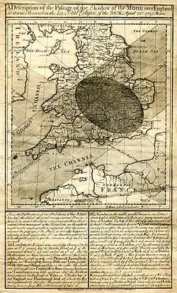 Durch die genaue Vorhersage von Edmond Halley[1] und gutes Wetter konnte in England eine umfangreiche Beobachtungskampagne durchgeführt werden, die zu einer verbesserten Vorhersage der Sonnenfinsternis vom 22. Mai 1724 führte. Weiterhin entdecke Halley bei seinen Berechnungen Abweichungen im Verlauf der Totalitätszone antiker Sonnenfinsternisse, die sich nur mit der Verlangsamung der Erdumdrehung erklären lassen (s. a. Delta T).