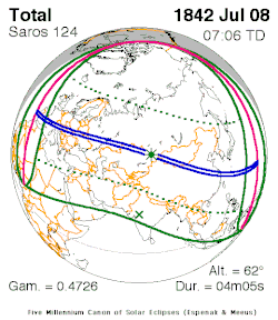 Die Sonnenfinsternis vom 8. Juli 1842 gehört zum Saros-Zyklus 124.