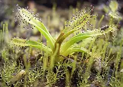Die Gattung Sonnentau (Drosera) zählt zur Familie der Sonnentaugewächse (Droseraceae) und bildet mit ihren über 200 Arten die zweitgrößte Gattung fleischfressender Pflanzen. Charakteristisch sind die mit Klebedrüsen besetzten Blätter der Pflanzen, die ihr den Fang von Beute und so das Gedeihen auch auf sehr nährstoffarmen Böden ermöglichen.