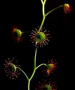 - ↑ Kazuki Tagawa, Mikio Watanabe, Tetsukazu Yahara: A sensitive flower: mechanical stimulation induces rapid flower closure in Drosera spp. (Droseraceae): RAPID FLOWER CLOSURE IN DROSERA. In: The Society for the Study of Species Biology (Hrsg.): Plant Species Biology. 2018 (researchgate.net).