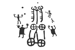In Petroglyphen aus der Nordischen Bronzezeit finden sich Wagendarstellungen in Kombination mit Radkreuzen. Eine bronzezeitliche Statue, die die Sonnenwagen-Symbolik aufgreift, ist der Sonnenwagen von Trundholm.