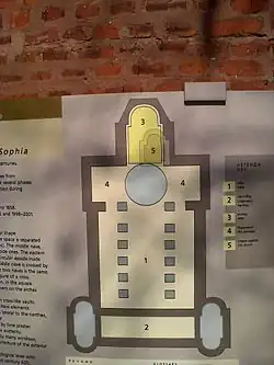 Die Sophienkirche ist ein wertvolles Kunststück der frühchristlichen Architektur in Südosteuropa. Sie ist eine Kreuzbasilika mit einer Vorhalle (Narthex), zwei östlichen Türmen, einem Turmkuppel und drei Altaren. Sie ist dreischiffig und mit einer dreiwändigen Apsis gebaut. Fußbodenmosaiken mit komplexen frühchristlichen Pflanzen- und Tiermotiven sind noch erhalten und ausgestellt. Die Kirche wurde 2013 restauriert und ist jetzt wieder für Gottesdienste und Besucher geöffnet.