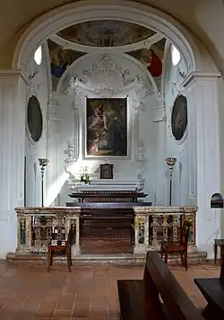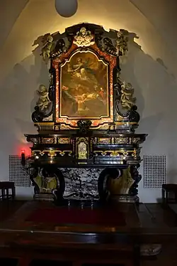 - Friedhof mit verschiedenen künstlerischen Grabstellen und Kapelle mit Fresko Crocifisso (Kreuzigung, 1843) von Giovanni Battista Sertorio[7]