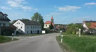 ![]() Südlicher Ortseingang mit Kirche St. Margareta