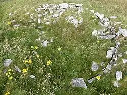 Im Westen liegen innerhalb des Cairnmaterials die Überreste eines eisenzeitlichen Wheelhouses von 7,5 m Durchmesser mit Nebengebäuden, zu dessen Bau die Steine des Clyde tombs und seines Cairns verwendet wurden. Die ringförmige äußere Wheelhousewand hat etwa 2,2 m Stärke und steht noch bis zu einer Höhe von 1,2 m. Vier der ursprünglich sieben Platten, die die namengebenden radialen Unterteilungen bilden, stehen noch. Die niedrigen Vorderwände dieser stallboxenartigen Abteilungen sind nur 0,4 m hoch. Dieses auch als Atlantic Roundhouse von Clettraval bezeichnete Objekt wird auf das 1. Jahrhundert v. Chr. datiert, obwohl bei erneuten Untersuchungen (zuletzt 1975) auch Scherben des 5. und 6. Jahrhunderts n. Chr. gefunden wurden.