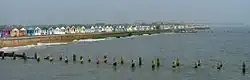 Oberhalb des Strandes liegen zwei Reihen hübsch bemalter Strandhäuschen. In früheren Jahrzehnten hatten viele von ihnen humoristische Namen, aber dieser Brauch scheint nun allmählich zu verschwinden.