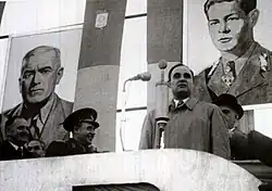 Eine weitere Form des antikommunistischen Widerstands, diesmal gewaltlos, war die Studentenbewegung von 1956. Als Reaktion auf die antikommunistische Revolte in Ungarn gab es überall im Ostblock Widerhall. In einigen Universitätszentren fanden Proteste statt, die zu zahlreichen Verhaftungen und Ausweisungen führten. Die am stärksten organisierte Studentenbewegung fand in Timișoara statt, wo 3000 Personen verhaftet wurden.[20] In Bukarest und Cluj bildeten sich organisierte Gruppen, die versuchten, mit der antikommunistischen Bewegung in Ungarn gemeinsame Sache zu machen und ihre Aktivitäten zu koordinieren. Die Behörden reagierten sofort: Studenten wurden verhaftet oder von ihren Kursen suspendiert, einige Lehrer wurden entlassen, und es wurden neue Vereinigungen gegründet, um die Aktivitäten der Studenten zu überwachen.