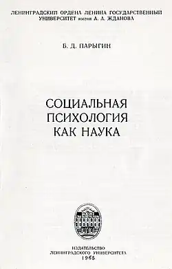 - Boris Dmitrijewitsch Parygin: Социальная психология как наука. 1. Auflage. Verlag der Staatlichen Universität Leningrad, Leningrad 1965.