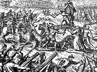 Auch der Zufall half den Spaniern: Pizarro zog in die Anden genau in der Zeit, als das Land durch den langen Bürgerkrieg erschüttert war.[23] Zudem hatte er das Glück, dass er gleich in Cajamarca auf Atahualpa traf und dass alle Macht in der Person des Inka konzentriert war. Mit Atahualpa als Geisel wurden dessen Generäle handlungsunfähig. Nach seinem Tod brach das Herrschaftssystem zusammen: Adelige rivalisierten im Kampf um die Macht und viele schlugen sich auf die Seite der Spanier. Zugleich verlor die herrschende Schicht, deren Führungsanspruch sich auf jahrzehntelange Erfolge gegründet hatte, durch den Bruderkrieg und die Ereignisse von Cajamarca an Rückhalt im Volk.[24] Von den Inka unterworfene Völker verweigerten sich dem Kampf gegen die Spanier, und einige verbündeten sich mit ihnen.
