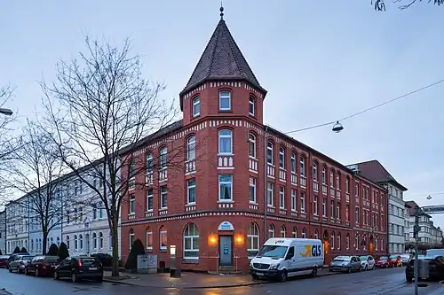Aus dem Jahr 1927 haben sich Mehrfamilienhäuser des Spar- und Bauvereins Wülfel und Umgebung beispielsweise das Eckgebäude unter der Adresse Ahornstraße 6 erhalten, zudem eine großteils verputzte Gebäudereihe von der Ahornstraße 1 und Am Mittelfelde 86 - 88 sowie der mit Anklängen der Neuen Sachlichkeit 1927 errichtete Klinkerbau Roßkampstraße 8 unter Sattelwalmdach.[1]