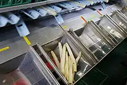 Während der Erntezeit werden in großen Spargelbetrieben, bei einer Verarbeitung von 5 bis 8 Spargel pro Sekunde (in der Praxis ca. 10000 bis 20000 Stangen pro Stunde), mit einer Sortiermaschine täglich mehrere Tonnen Spargel sortiert und für den Verkauf an die Großhändler vorbereitet.