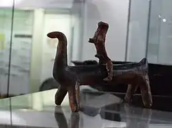 Angefertigt wurde diese Reiterfigur von den Kelten. Bei der Tonplastik, die in dieser Art selten ist, handelt es sich um eine etwa 8 Zentimeter lange Grabbeigabe.[1] Solche Plastiken wurden den Verstorbenen in das Grab mitgegeben, um ihn als Angehörigen einer begüterten Reiterkaste auszuweisen. Das Fundstück befindet sich heute im Naturhistorischen Museum Nürnberg[2] als Kopie.