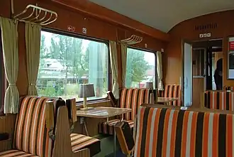 Bei den Österreichischen Bundesbahnen verkehren Speisewagen in Railjet- und Railjet-Expresszügen. Bis in das Fahrplanjahr 2025 hinein noch zusätzlich in manchen Eurocity- sowie einigen wenigen Intercity-Zügen. 2025 wurde das Speisewagenangebot der ÖBB in IC/EC-Zügen auf das Zugpaar EC 163/164 Transalpin reduziert.[10] In Österreich laufen ebenfalls Speisewagen der benachbarten Bahngesellschaften SBB, DB, ČD, MÁV, PKPIC, SŽ und ŽSSK.[2] sowie unter dem Abschnitt Deutschland näher beschriebenen schwedischen Speisewagen des Unternehmens Snälltåget.[11]