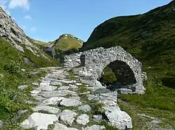 Der Septimerpass war seit der Römerzeit dank direkter Nord-Süd-Verbindung einer der wichtigsten Alpenübergänge. Oberhalb des Passweges auf 2340 m gab ein römisches Feldlager ⊙ aus der augusteischen Kaiserzeit, das Platz für drei Zelte für je etwa 200 Mann starke Einheiten bot. Es sicherte wahrscheinlich den wichtigen Nachschubweg für die römische Armee.[4]