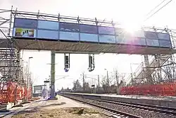 Beispiel für ein Wetterschutzdach auf einer Bahnbrücke.