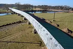 Ein frei stehendes Gerüst, das eine Verbindung über ein Hindernis bietet.