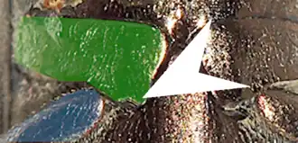 Abb. 5: Hinter- leib Unterseite, kahler Streifen rechts grün ge- tönt |