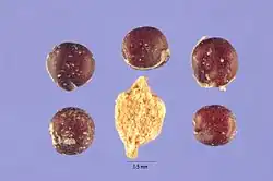 Die häutige, gelblich-weiße Fruchtwand umgibt den Samen. Es gibt zwei verschiedene Samentypen (Heterokarpie): Hellbraune, etwas konkave Samen mit einem Durchmesser von 1,6 bis 2,5 Millimetern sowie rötlich-schwarze, flache oder etwas konvexe Samen mit einem Durchmesser von nur 1 bis 1,5, selten bis zu 2 Millimetern.