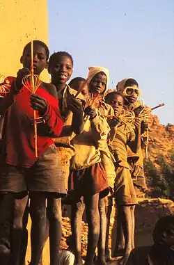 Kinder verwenden einfache Stöcke als „Schwert“, „Dolch“ oder „Speer“ oder einen gekrümmten Ast als „Pistole“. Sie bauen sich ihren eigenen Bogen aus Haselnussstöcken und einer Schnur, schnitzen sich kunstvoll verzierte spitze und scharfe Schwerter, Dolche und Speere. Auch Steinschleudern und Bumerangs werden selbst gebaut und geschnitzt.