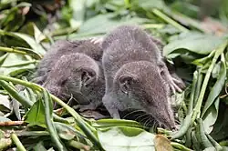 • Der Gattung Nectogale gehören zwei Arten an,[16] es sind die einzigen Spitzmäuse, die mit echten Schwimmhäuten ausgestattet sind. Sie leben im südlichen China und der Himalaya-Region. Fische dürften einen Teil ihrer Ernährung ausmachen.