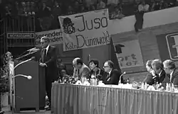 Auch deutsche Rockgrößen wie Can (3. Februar 1972), Marius Müller-Westernhagen (25. November 1981), Udo Lindenberg (13. März 1988) und Peter Maffay (10./11. März 1990) feierten hier große Erfolge. Ein folgenreiches Konzert gab hier am 13. November 1976 DDR-Liedermacher Wolf Biermann vor ausverkauftem Haus, das drei Tage später zu seiner Ausbürgerung aus der DDR führte.[13] Die Kölner Rockband BAP trat zwischen 1984 und 1996 insgesamt 23 Mal in der Sporthalle auf, erstmals am 13. Oktober 1984. Zwei Kölner Bands haben der Sporthalle mit Musikstücken musikalische Denkmäler gesetzt: BAP mit Hück ess sing Band en der Stadt (Januar 1999) und die Bläck Fööss mit Sporthall (1984).