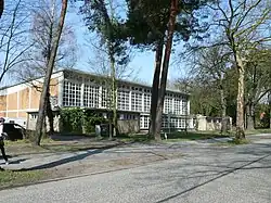 Die Sporthalle steht in der Onkel-Tom-Straße 58–60 und wurde in den 1960er Jahren gebaut. Sie ist 900 m² groß und hat Sitzplätze für rund 200 Personen. Von Montag bis Freitag steht die Halle für Schulen und Vereine für Unterricht und Training zur Verfügung. An den Wochenenden dient sie dem Wettkampf- und Turnierbetrieb. In der Halle wird Handball, Volleyball und Hockey gespielt. Im Winter trainiert der Zehlendorfer Ruderverein im Anbau der Halle mit seinem eigenen Strömungskanal. Außerdem besitzt die Sporthalle für Tischtennis und anderen Freizeitsport einen Mehrzweckraum. Der Zehlendorfer Tanzverein veranstaltet in der Halle seine Rock-’n’-Roll-Turniere und der Karateverein seine Kampfspiele. Dort werden in beiden Sportarten die Berliner Meisterschaften veranstaltet. Zur Halle gehört auch ein Boxring.