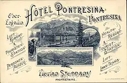 - ↑ Daniel Kessler: Hotels und Dörfer. Oberengadiner Hotellerie und Bevölkerung in der Zwischenkriegszeit. Selbstverlag, Bern 1998, S. 48.