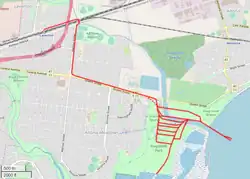 Die Schmalspurbahnstrecke mit einer Spurweite von 610 mm (2 Fuß) begann am Bahnhof von Laverton und führte entlang der heutigen Merton Street und der heutigen Queen Street durch das Sprengstoff­lager Truganina zu einem Steg in der Altona Bay.[2][3] Sie hatte acht parallel zur Hauptstrecke verlaufende Nebengleise sowie einen Schuppen und Abstellgleise am Bahnhof Laverton.[3]