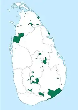 Vor allem in den Nationalparks des Landes, wie etwa im Yala-Nationalpark oder im Wilpattu-Nationalpark, gibt es heute noch eine recht große Anzahl von Leoparden. Aktuelle Schätzungen gehen von einem Bestand von bis zu 600 freilebenden Tieren aus. Als Gründe für den rapiden Rückgang der Population zählen die Zerstörung ihres Lebensraums, wie etwa durch Abholzung; eine vereinzelte, illegale Jagd wegen des Leopardenfells und die Verwendung von Pestiziden, die sich in der Nahrungskette anreichern.[3]