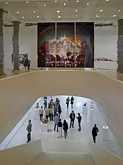 Im 2012 eröffneten Erweiterungsbau des Kellers, in den sogenannten Gartenhallen, findet die Sammlung der Gegenwartskunst im Städel Museum Platz.[3] Eines der prominentesten Werke der Sammlung der Gegenwartskunst (1945 bis heute) im Städel ist Francis Bacons Studie für die Kinderschwester in dem Film „Panzerkreuzer Potemkin“ von Eisenstein aus dem Jahr 1957. Damit rezipierte Bacon den Stummfilm Panzerkreuzer Potemkin von Sergei Michailowitsch Eisenstein nach einem Standbild der am Kopf getroffenen Krankenschwester auf der Hafentreppe von Odessa.[49] Weitere Gemälde sind der Kopf von Georg Baselitz und Jörg Immendorffs Kaltmut, in dem dieser sich auf den Kalten Krieg bezog.[50] Daneben sind Bilder von Martin Kippenberger, Daniel Richter, Gerhard Richter und Sigmar Polke und weitere zu sehen.