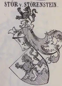 Mitglieder der Adelsfamilie Stör werden erstmals in der ersten Hälfte des 12. Jahrhunderts genannt.[1] Bei der Übergabe von zwei Mansen bei Traitsching durch Adelheid von Wartberg 1138 an das Kloster Ensdorf wird Graf Gebhard III. von Sulzbach, der sich das Gut zu Unrecht angeeignet hatte, genannt. Die Vogtei übertrug Otto V. von Wittelsbach 1144 an Graf Gebhard. Zeuge dieser Abmachung ist u. a. auch ein Fridrich Stör. In einer Urkunde des Klosters Kastl von 1170 (bisweilen auch auf 1230 datiert) tritt Rupertus Stoere in einer Zeugenreihe auf, die von dem Reichsministeralien Vlricus de Chunigstein angeführt wird. Zu dem Rupertus Stör heißt es 1170 in der Kastler Reimchronik: