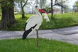 Storchenfigur als Symbolisierung einer Geburt im Salzburger Flachgau