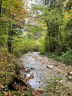 Der Stümpfelbach, im Oberlauf Kalmbach ist ein rechter Zufluss der Loisach bei Kochel am See in Oberbayern.