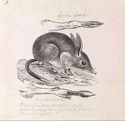 - ↑ a b c d e Kenny J. Travouillon, Bruno F. Simões, Roberto Portela Miguez, Selina Brace, Phillipa Brewer, David Stemmer, Gilbert J. Price, Jonathan Cramb and Julien Louys. 2019. Hidden in Plain Sight: Reassessment of the Pig-footed Bandicoot, Chaeropus ecaudatus (Peramelemorphia, Chaeropodidae), with A Description of A New Species from central Australia, and Use of the Fossil Record to Trace Its Past Distribution. Zootaxa. 4566(1); 1–69. DOI: 10.11646/zootaxa.4566.1.1