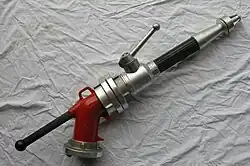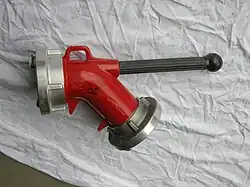 Der Stützkrümmer ist eine Armatur zur Wasserfortleitung bei der Feuerwehr.[1] Er soll beim Einsatz eines BM-Strahlrohrs die Rückstoßkraft des Wassers über die Schlauchleitung zum Boden leiten und somit das Halten eines solchen Rohres mit zwei statt drei Personen ermöglichen.