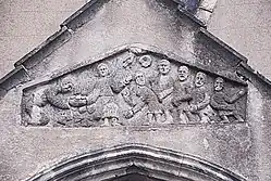 Im Giebeldreieck des Narthex' oberhalb der großen Öffnung befindet sich das bereits oben genannte Relief auf einem hier wiederverwendeten Monolithen, mit oberseitig dachförmiger Abschrägung, welches das Martyrium, die Steinigung des heiligen Stephanus* darstellt, der erste Patron der Kirche. Das Relief wird datiert auf das 12. Jahrhundert und überdeckte vermutlich ursprünglich das Portal der Kirche.