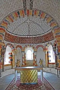 Hinter der vorgenannten Arkade schließt sich mit geringem Rückversatz die im Grundriss halbkreisförmige Chorapsis an, deren Wand nahtlos in die halbkuppelförmige Kalotte der Apsis übergeht. Ein etwa 30 Zentimeter hoher Sockel verläuft rund um die Apsis, innenseitig bündig mit dem unteren Rand der Kalotte.