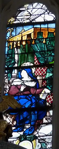 Das Fenster an der Ostwand des Seitenschiffs stellt im oberen Bereich die Geburt Christi und die Anbetung der Hirten dar, im unteren Teil die Anbetung der Heiligen Drei Könige.