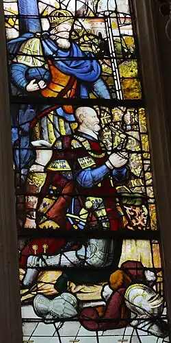 Das Fenster stellt Anne de Montmorency dar, der neben seinen fünf Söhnen kniet und die Hände zum Gebet gefaltet hat. Die Figur über Anne de Montmorency wird als Kaiser Heinrich II. interpretiert. Die Söhne sind dem Schutz des heiligen Stephanus anbefohlen, der ein Buch hält, auf dem Steine als Zeichen seines Martyriums liegen. Auf den oberen Szenen sind die Geißelung und die Verspottung Jesu dargestellt.