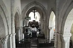 Im Kern ist die Kirche eine dreischiffige Basilika mit Querhaus, Vierungsturm und rechteckigem Chor aus dem 2. Viertel des 12. Jahrhunderts. Im 16. und 17. Jahrhundert wurden die Seitenschiffe teilweise verändert und Kapellenanbauten errichtet und das Langhaus mit einem alle drei Schiffe überspannendem Satteldach versehen. Der Turm mit Blendbögen und Schallarkaden (vgl. Chapaize) wurde im 19. Jahrhundert um ein Geschoss erhöht. Das obergadenlose Hauptschiff wird von einer typisch burgundischen Spitztonne mit Gurtbögen gewölbt, die Seitenschiffe haben Kreuzgratgewölbe. Wie in Bard-le-Régulier und Bligny-sur-Ouche ist die durch die Zisterzienser reduzierte cluniazensische Bauweise vorbildlich gewesen (vgl. Fontenay). Die romanischen Kapitelle geben den Einfluss von Saulieu zu erkennen. Die Kirche ist reich an Ausstattungsstücken des 16. bis 18. Jahrhunderts.