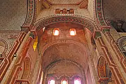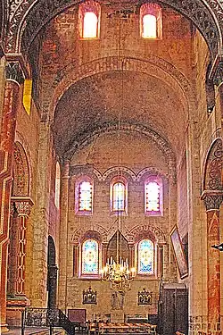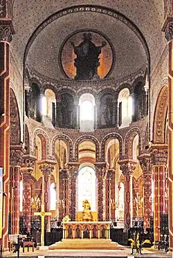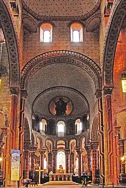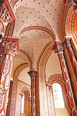 Etwa zur gleichen Zeit erfolgte die umstrittene Ausmalung des Innenraums der Kirche unter Leitung von Anatole Dauvergne, die unvorbereitete Besucher aufschrecken lässt.[7] Sie hat damals immerhin 60 000 Goldfranken gekostet. Auch wenn man sich vergegenwärtigt, dass fast alle romanischen Kirchen ursprünglich farbig ausgemalt waren, so war das aber sicher nicht auf diese grelle Art und Weise. Die Kirche hat jedenfalls nie so ausgesehen wie heute.