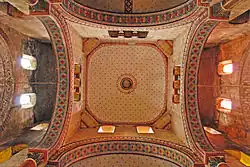 Bemerkenswert ist der Typus der Trompen unter der Kuppelwölbung. Sie dienen üblicherweise dazu, das Vierungsquadrat in die Form eines Achtecks zu überführen, auf dem dann die Kuppel aufliegt. Trompen bestehen aus kleinen Rundbögen, die eine möglichst gleichmäßige Nische einrahmen. Hier nimmt ein flacher Konsolstein den unteren Teil ein. Hierbei könnte es sich um Widerlager von Schalungsträgern bei der Erbauung der Kuppel handeln. Vielleicht handelt es sich auch um eine geschickte Lösung, den heiklen Übergang der Nischen und den Vierungsecken zu überbrücken. Im Scheitel der Kuppel gibt es eine kreisrunde Öffnung, zum vertikalen Transport von Glocken, Werkzeug und Baumaterial. Ihre Höhe beträgt 23,30 Meter.