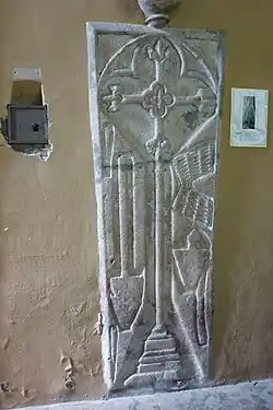 - Ein weiterer Grabstein aus dem 16. Jahrhundert, auf dem landwirtschaftliche Werkzeuge wie eine Hacke, ein Spaten und ein Sieb dargestellt sind, wurde vermutlich für einen reichen Bauern angefertigt (Monument historique (Objekt) seit 1913[8]).