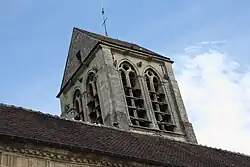 Der über der Vierung, über quadratischem Grundriss errichtete Glockenturm besitzt auf allen vier Seiten große, leicht zugespitzte Zwillingsfenster. Unter dem Dachansatz und an den Wänden ist er mit groben Fratzen besetzt.